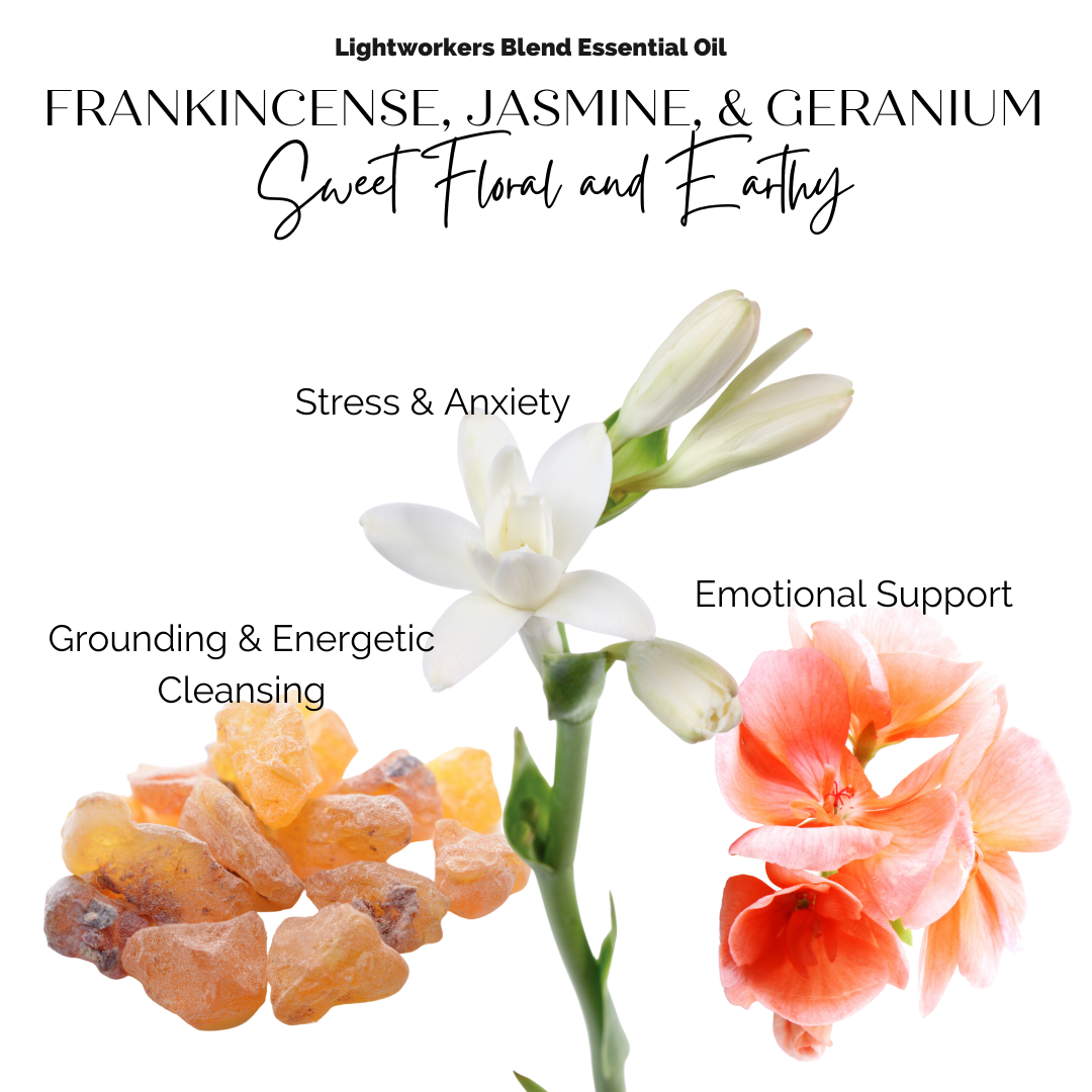 This essential is made from pure 100% essential oils of Frankincense, Geranium and Jasmine.