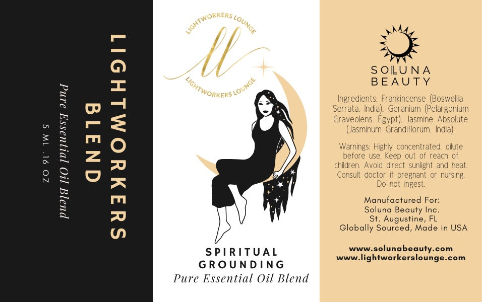 Everyone's a Lightworker. If you find yourself holding this bottle, chances are you've done some intense shadow work, went through a few wild epiphanies about your generational trauma, and survived a dark night of the soul or two. Don't go at it alone! Take this; Lightworkers Lounge essential oil. Drift away into a grounded and uplifted meditative experience. Calm the stress and anxiety we encounter everyday. Inhale your strength, vitality, and love…exhale everything that no longer serves you. This Essential oil blend was curated by the founder of Lightworkers Lounge alongside Soluna Beauty’s own Master Aromatherapist to bring you the highest quality essential oil for benefit of mind and body.
